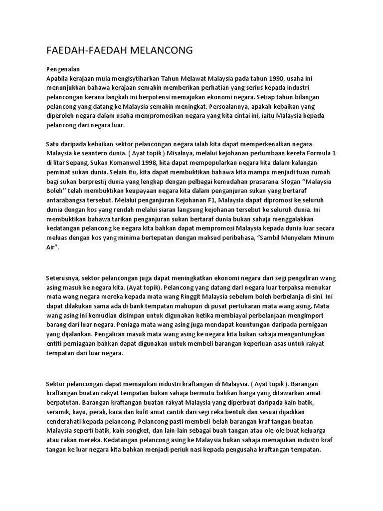 Contoh Karangan Faedah Melancong Contoh O Otosection