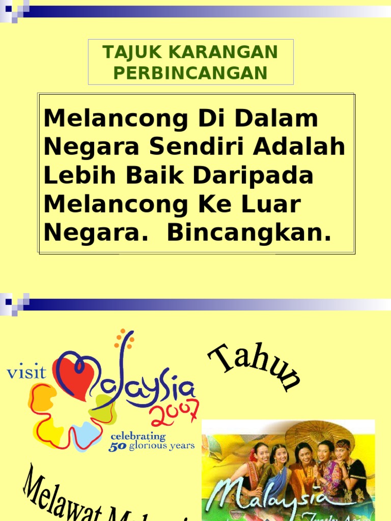 Mengapakah ramai orang suka pergi melancong ke luar negara mahupun dalam negeri berjalan jalan dengan kereta. Pelajari ayat-ayat mudah dalam. Oleh yang demikian soalan atau tajuk yang dibincangkan menepati kehendak kerajaan untuk menggalakkan semua rakyat Malaysia khususnya murid.